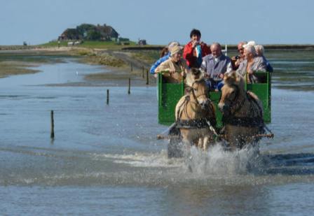 Nordstrand und Fährüberfahrt zur Hallig Hooge. Hier