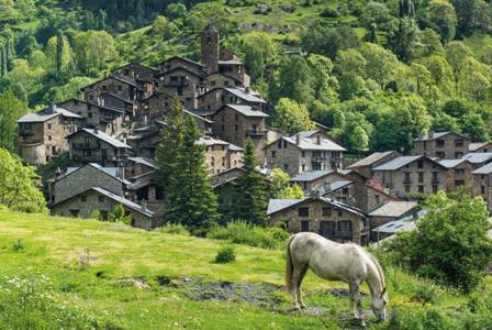 Escaldes. Sie sehen typische Dörfer mit romanischen